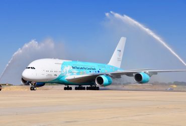 O modelo Airbus A380 da Hi Fly chegou em Caracas, ...