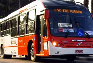 Um ônibus que passava na pista central da Avenida das ...