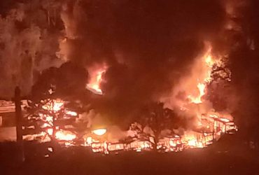 Uma garagem das empresas de transporte Petro Ita e Cascatinha, ...