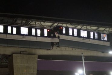 Em janeiro de 2019, dois trens do monotrilho da Linha ...